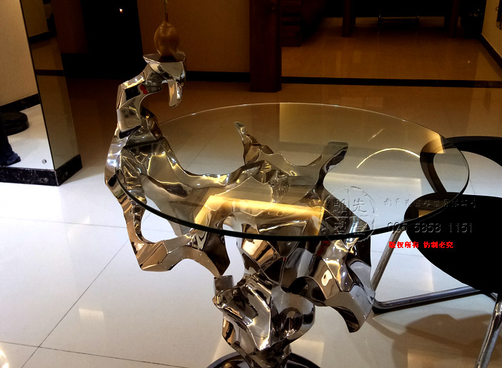 第5空間實(shí)驗(yàn)性研究新作《對(duì)話 · 石溪》,該作品名中石溪具有多重意義,一是指表象清泉石上流之表意(玻璃代表水,在人造金屬石上流動(dòng)),另一含義是指和先賢著名畫家石溪的心靈對(duì)話也,再則,石溪乃是一種情境,有曲水流觴之意境也,對(duì)話是指人與自然、人與語境、人與人的對(duì)話,桌子便是在一起對(duì)話與交流的平臺(tái)